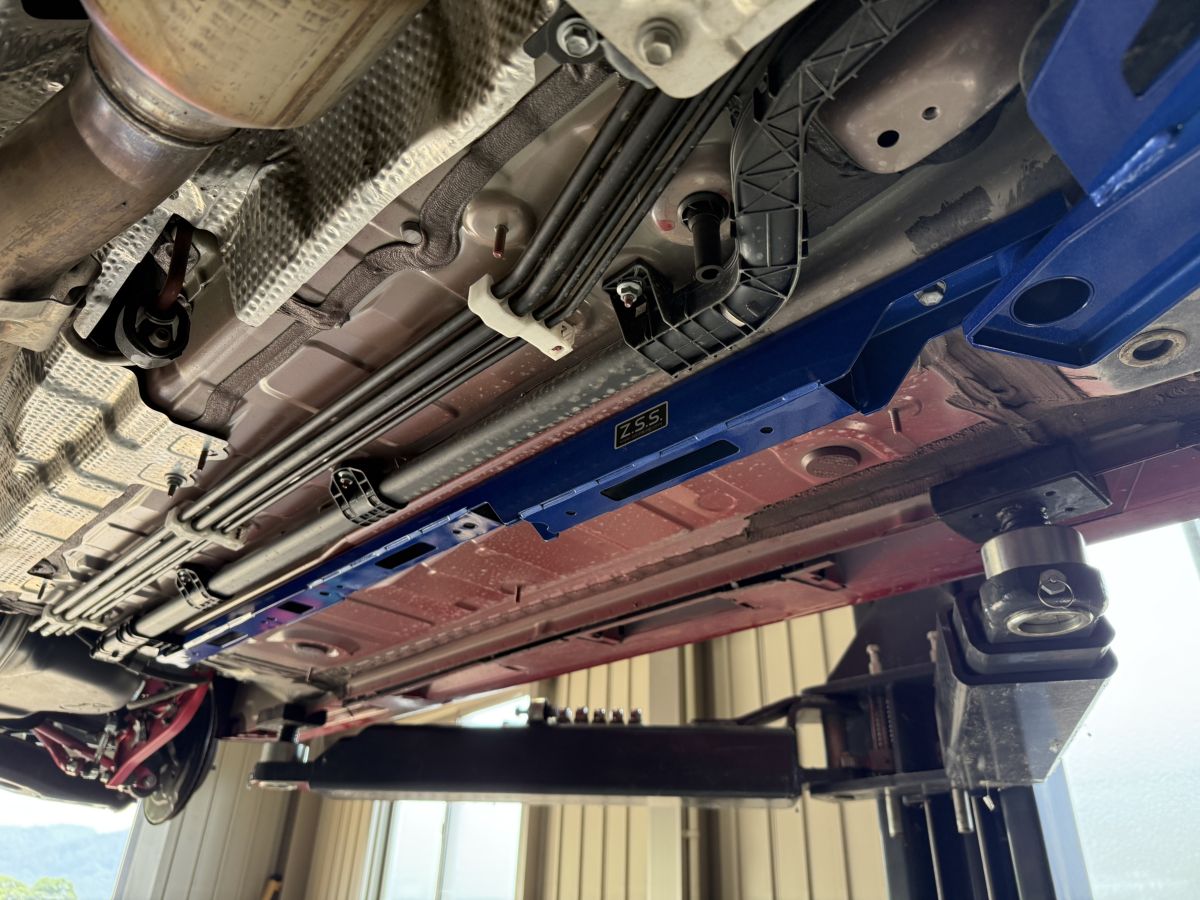 Z.S.S.製 GRヤリス専用ミドルロアブレースは、高密度スチールを採用した補強パーツです。